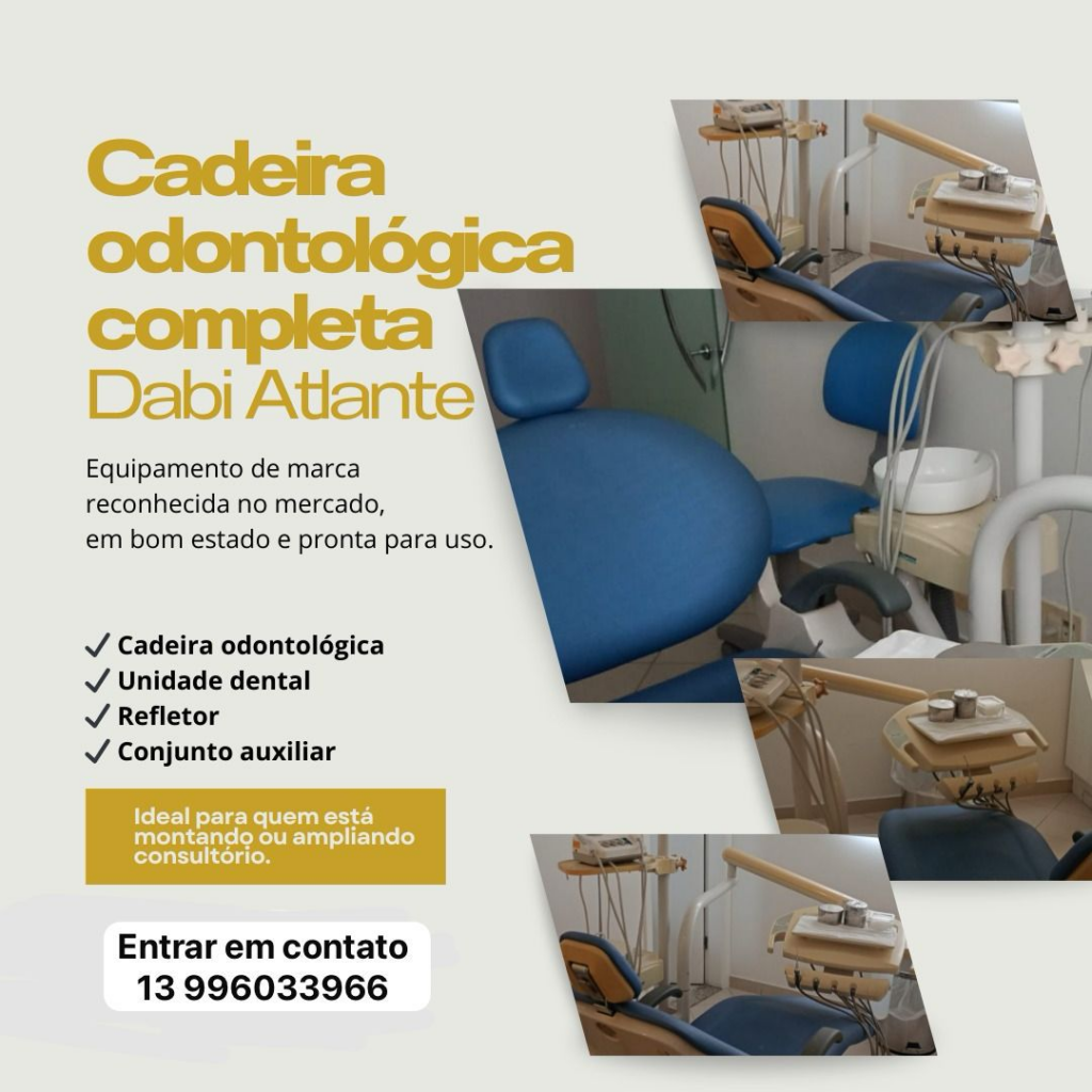 Cadeira de marca reconhecida no mercado em bom estado e pronta para uso. Cadeira odontológica, unidade dental, refletor e conjunto auxiliar. Ideal para quem está montando ou ampliando consultório. Mais informações: (13) 99603-3966