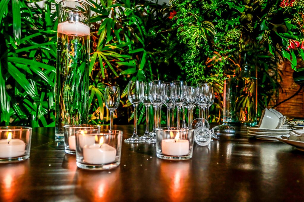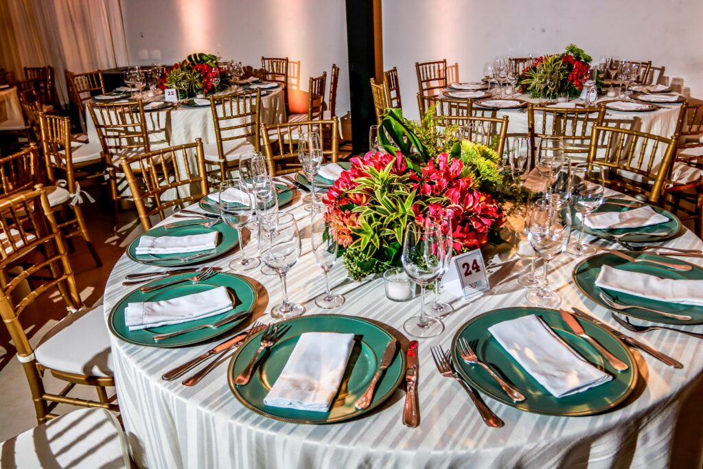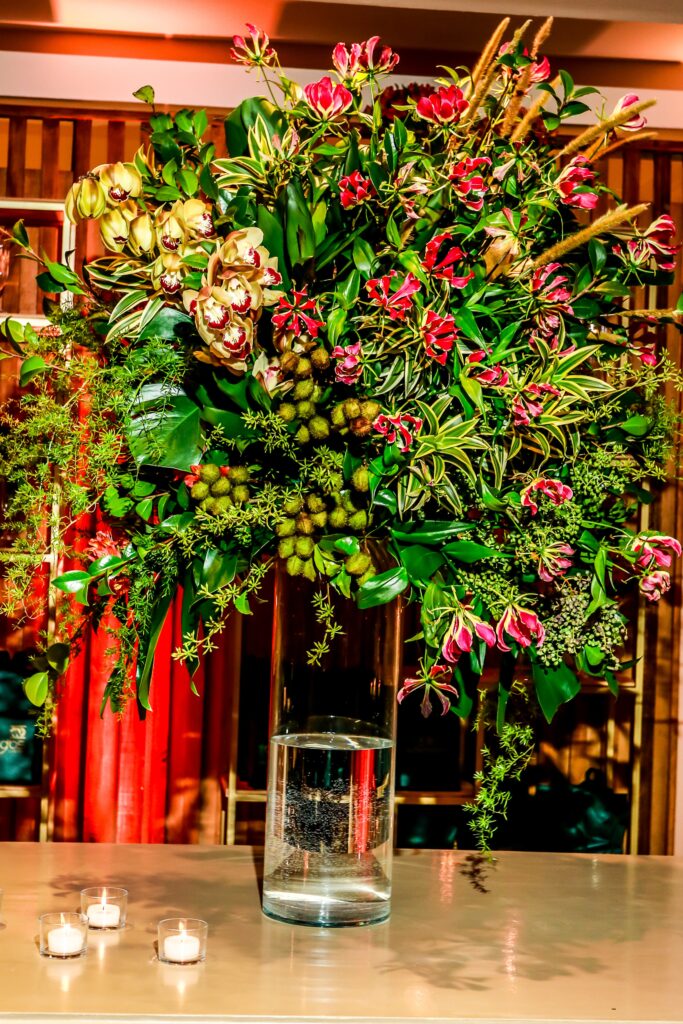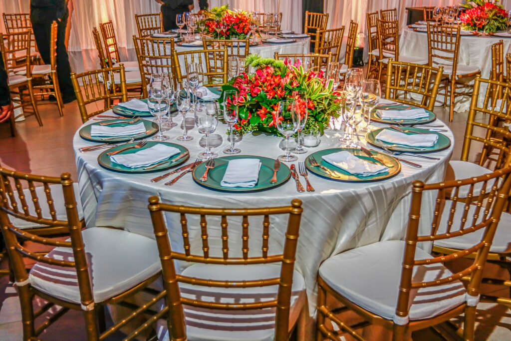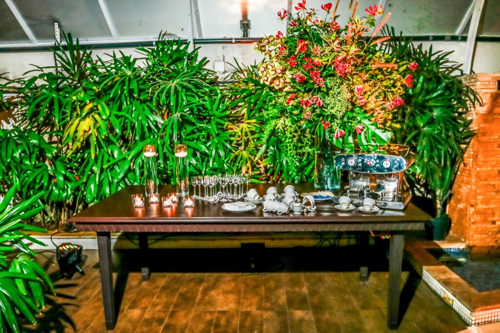 A decoração ímpar do salão foi desenvolvida por Pupy Zogaib, escolhida a dedo por ser a melhor especialista em cenografia, arte floral, esculturas em musgo, decoração e flores para eventos do Litoral.