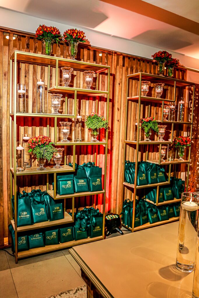 Salão da RecepçãoArranjo floral únicoArmário organizou a colocação dos brindesConvidados receberam brindes do Ao Pharmaceutico e da Olsen na saída do eventoCafé e lícor foram servidos aos convidados na saída do eventoCada detalhe da decoração foi pensado com muito carinhoAs peças para o café e o licor no fim do evento foram escolhidos para refletir o glamour da ACDBSTodas as mesas estavam confortáveis e muito bem ornamentadasAs mesas foram distribuídas a fim de facilitar a circulação pelo salãoA decoração de todo o salão seguiu a ideia de valorizar a gloriosa história da ACDBSCada mesa teve uma decoração especialTodas as mesas contaram com talheres e taças adequadas para a festaOs parceiros da ACDBS no evento foram lembrados no painel instagramavel da festaUm espaço de lounge e convivência foi montado na entrada do salãoA recepção também recebeu decoração especialBolo do Centenário também recebeu uma decoração especial