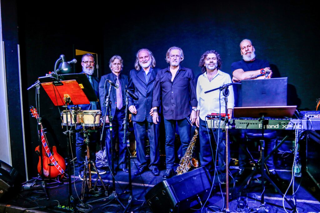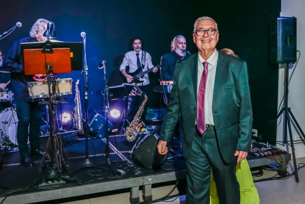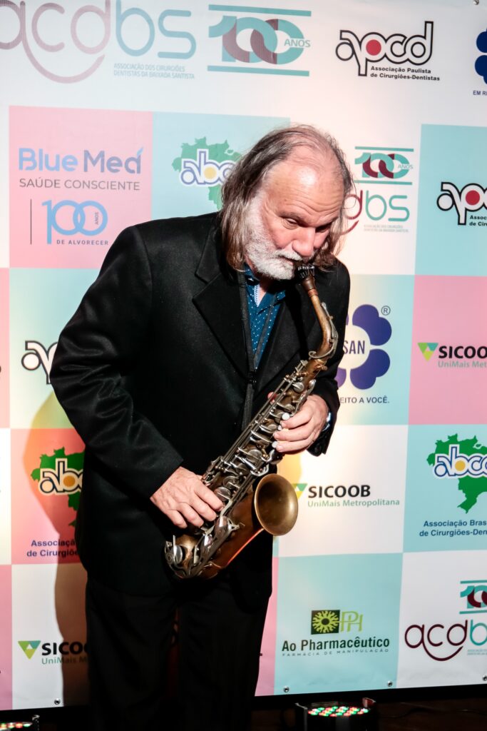 O incomparável sopro de José Simonian harmonizava a recepção dos convidadosA Banda Lobão Quintet junto com Simonian antes de começar a comemoração