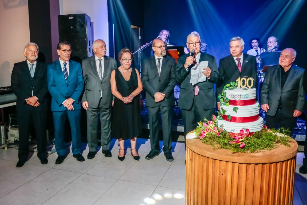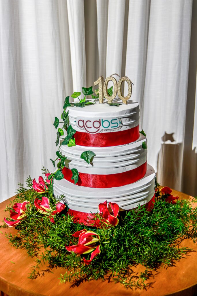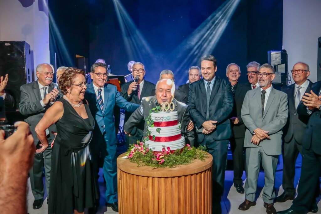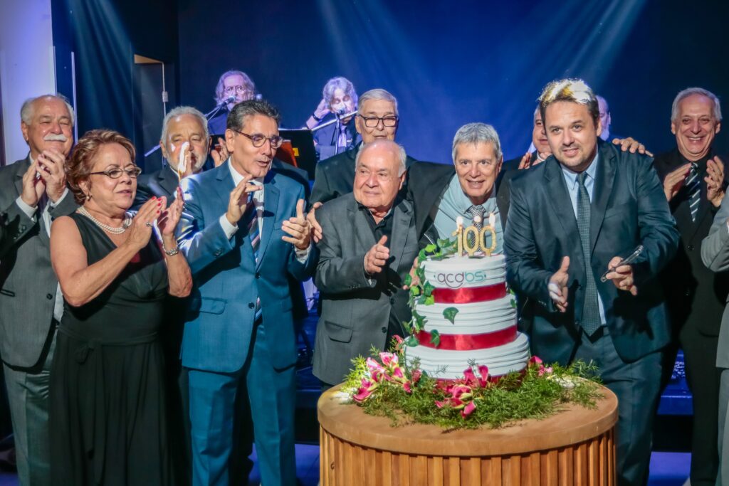 Não há festa sem parabéns e bolo. O Presidente da ACDBS, Dr. Osvaldo Servulo da Cunha interrompeu a apresentação inesquecível do Lobão Quintet após o clássico "Exagerado" do saudoso Cazuza e pegou o microfone chamando à frente toda atual Diretoria, o Conselho Deliberativo e o Conselho Fiscal da ACDBS, a Comissão do Centenário, Ex-Presidentes da Entidade e as Autoridades Presentes para cantar parabéns.