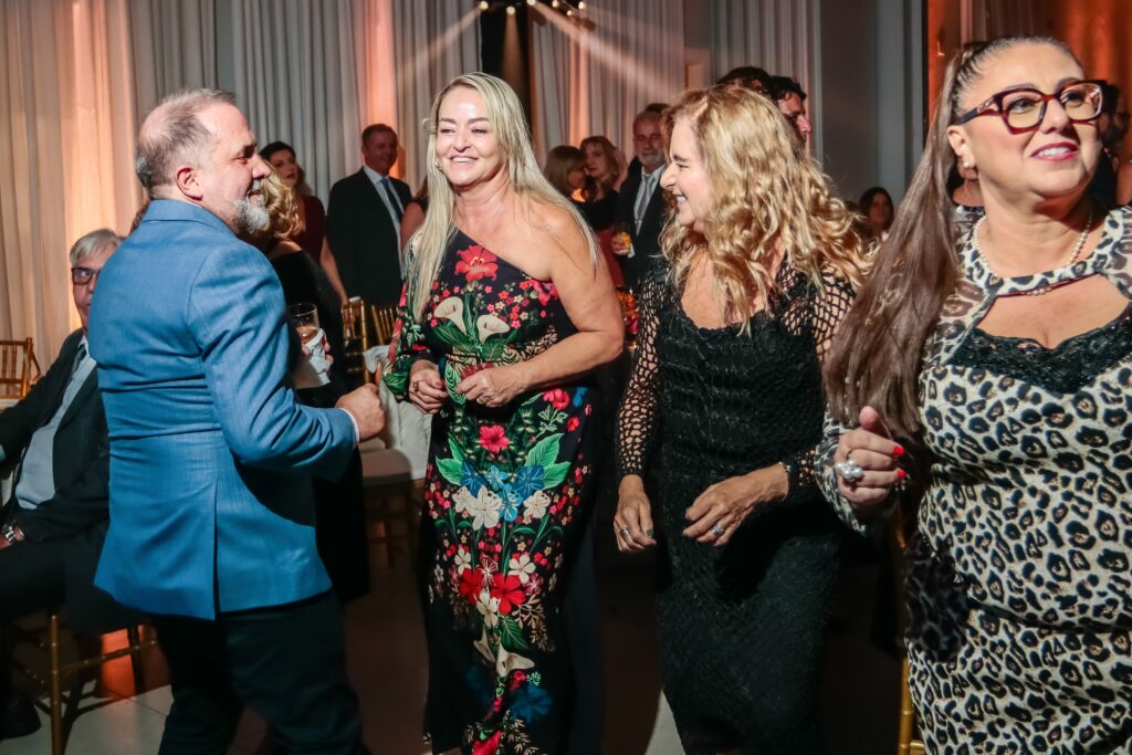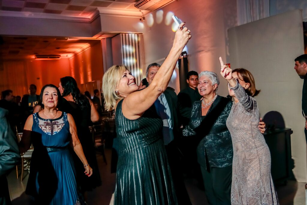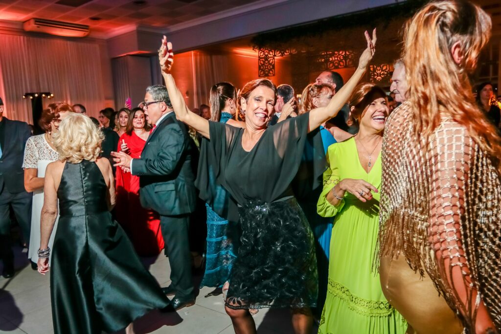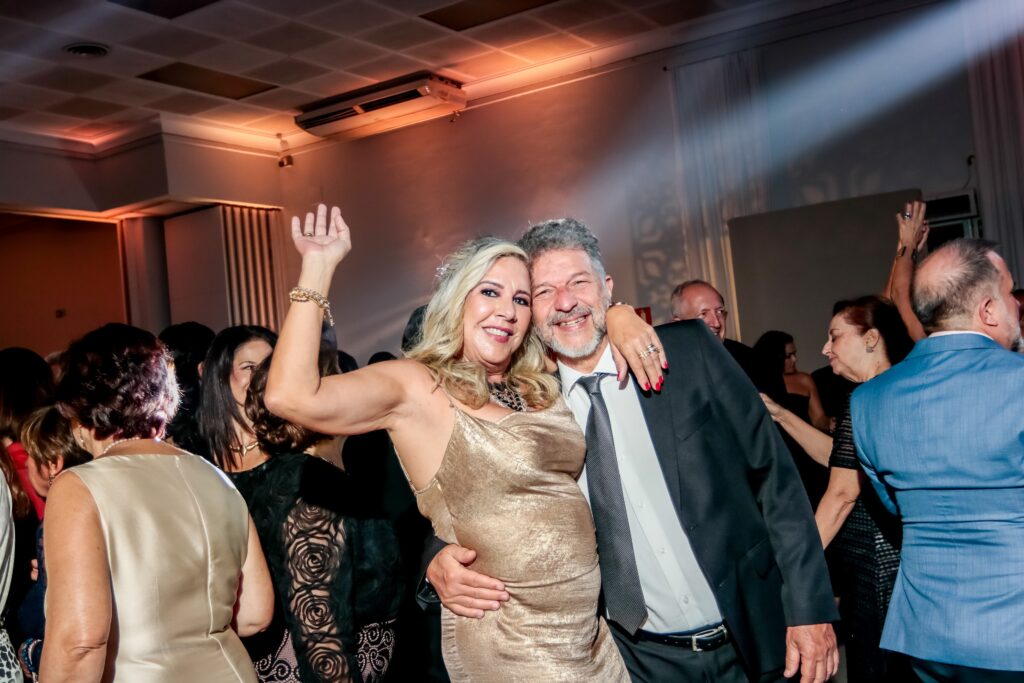 A animação foi a marca dos encontros na Festa dos 100 Anos e a alegria e a dança reinou na Pista do Salão Nobre do Tênis Clube de Santos.