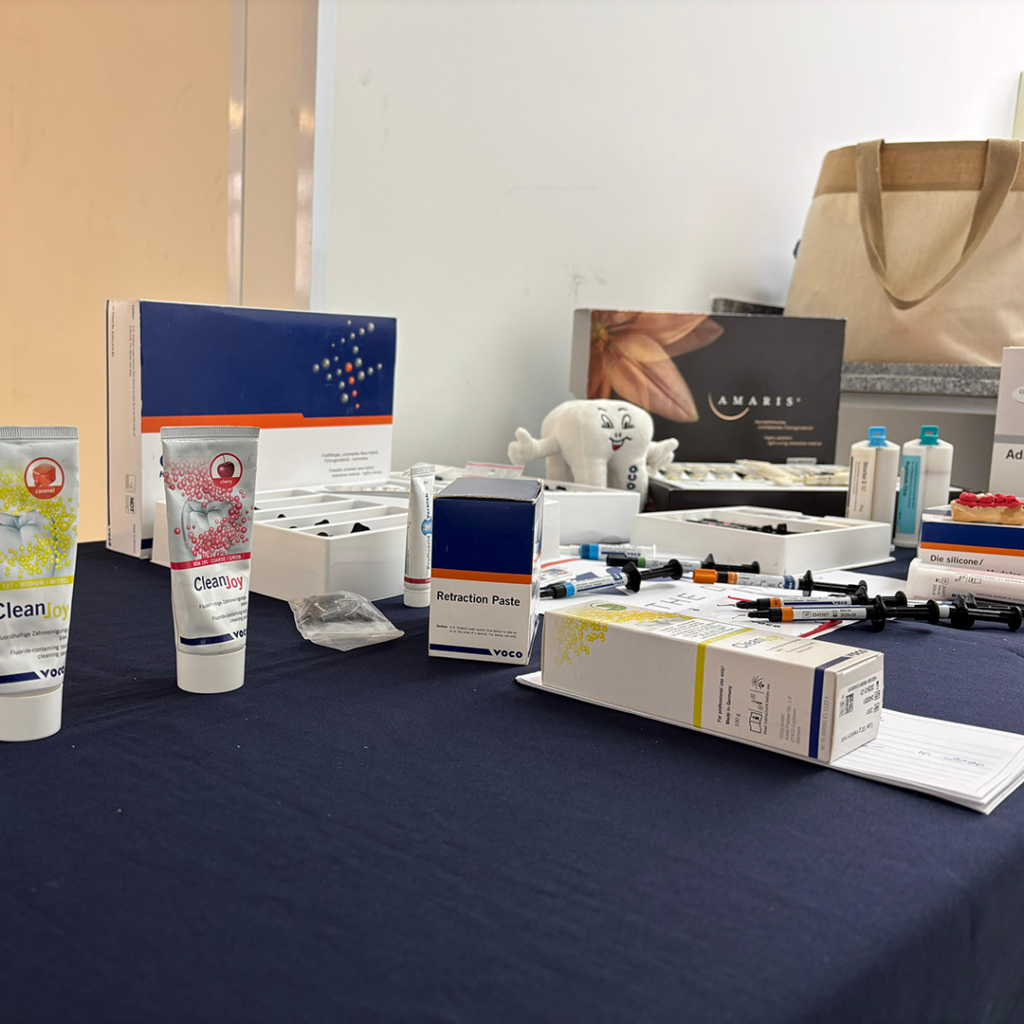 Todo o material de consumo está incluso, fornecido por empresas parceiras como Ultradent, FGM, Quimidro, Kuraray, Voco, Laordental, Mixpac, Shofu e SDI.