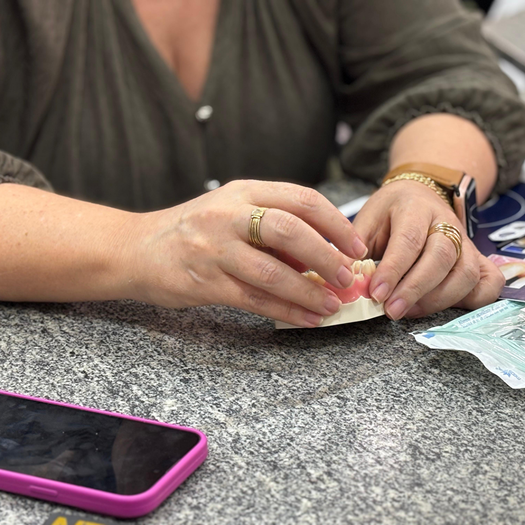 Professora do Fix.Art, Dra. Ingrid Petta Menezes, detalha a dinâmica do curso: “Abordamos desde a parte de anatomia até a confecção de peças. É como se fosse uma mini- especialização em seis módulos. O básico de uma simples anatomia até a realização de um pequeno ajuste oclusal, mostramos como fazer esse diagnóstico com precisão”.