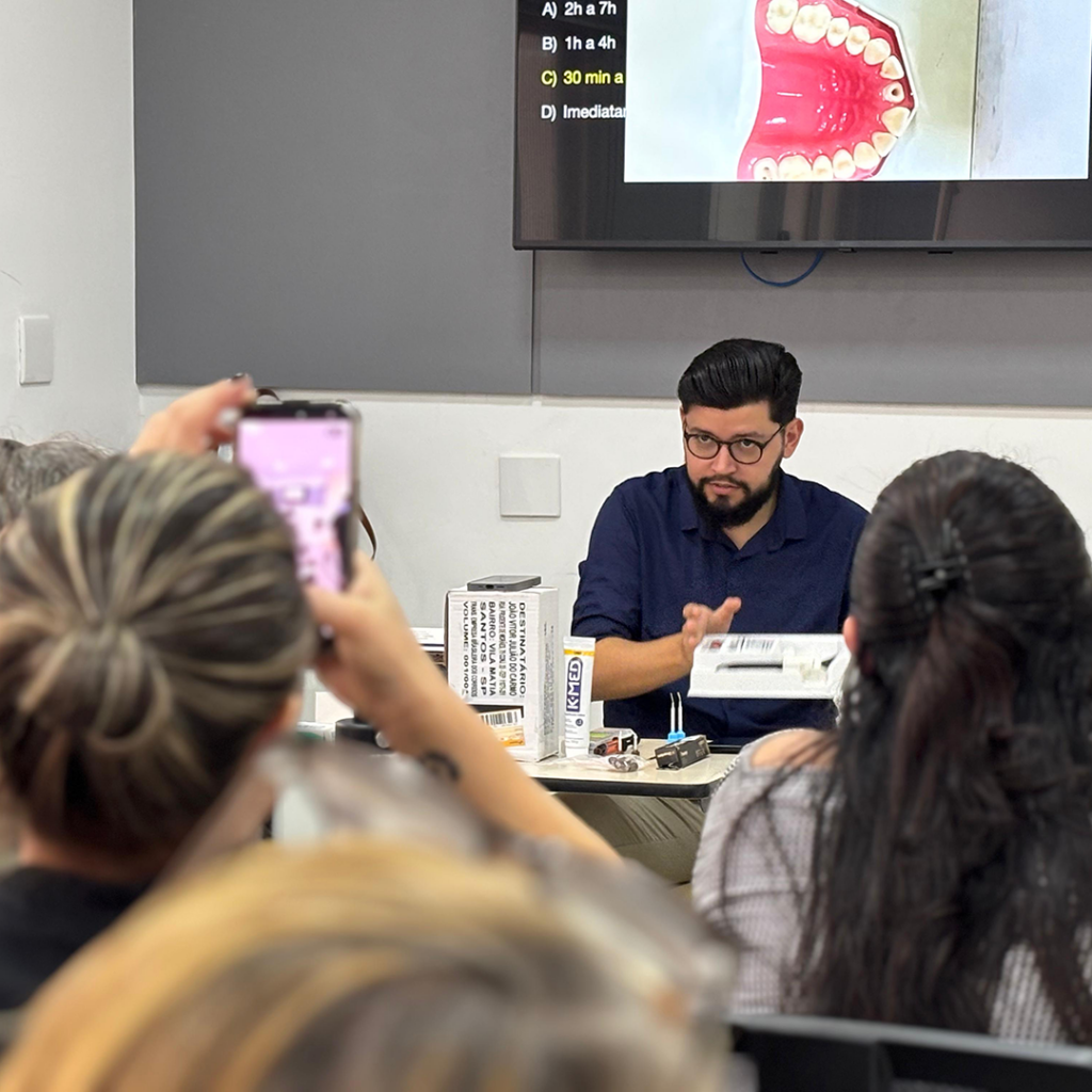 Coordenador do Fix.Art, Dr. João Vitor Julião do Carmo, explica mais sobre o curso: “Esse é um curso que acontece no período de seis meses, é uma imersão no que existe mais de moderno de Dentística e Prótese Fixa, quando a gente fala, na atualidade, da ornitologia adesiva. Ele acontece no período de seis meses, onde a gente vai abordar técnicas de restauração, restaurações anteriores, preparos anteriores, preparos de restaurações posteriores, também abordar pinos e retentores, gestão, marketing, fotografia e tudo isso mais”. Dr. Julião completa “Nosso curso abordar desde o manejo do substrato passando por sistemas adesivos e fotoativadores”.